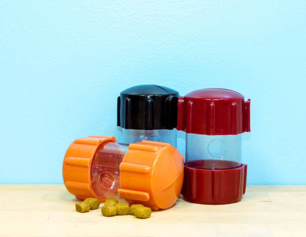 If your cat is a master forager combine this toy with a foraging egg mini. Fill the egg and drop it inside the gear toy to increase the challenge and make your cats work extra hard! You can also add a ping pong ball or two inside so that the food does not always make it to the opening so easily.